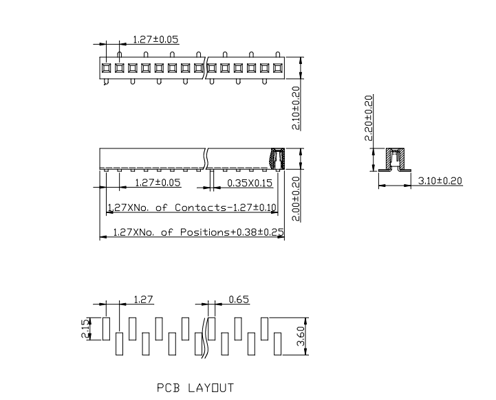 1.27mm Pitch Single Row Female Pin Header Connector With The Minimum Pull Force 0.06KGF